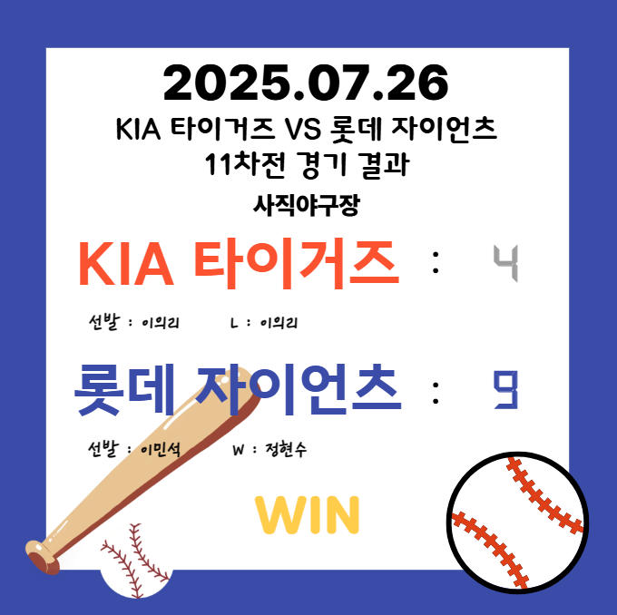 2025년 7월 26일 KBO 리그 KIA 타이거즈 VS 롯데 자이언츠 11차전 경기 리뷰 본문