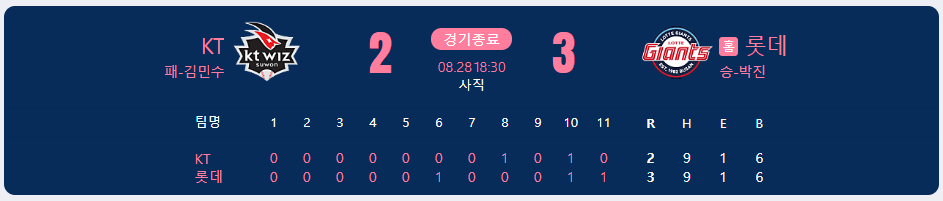 2025년 8월 28일 KBO 리그 KT 위즈 VS 롯데 자이언츠 15차전 경기 리뷰 본문